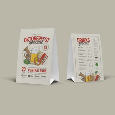 Convey your message instantly to your prospects. A perfect way for any situation. Important information, Special Discounts, unique offers or at a glance information, Table Tents/ displays are a perfect solution.
